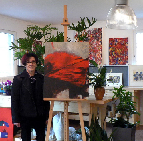 Das Bild zeigt die Hobby-Malerin Heide Huss zusammen mit einem ihrer zahlreichen Bilder. ..mehr Bilder hier...