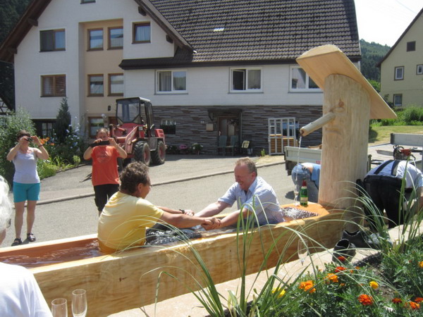 längerer Suche wurden sie im Südschwarzwald bei einem Brunnenbauer in Schonach fündig. Der Brunnen aus dem 100 Jahre alten Douglasienholz soll bis zu 50 Jahre lang halten und ist recht pflegeleicht.