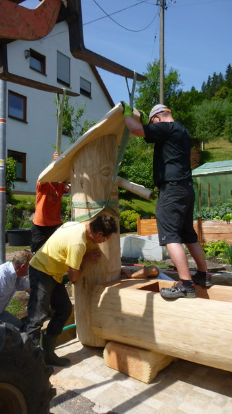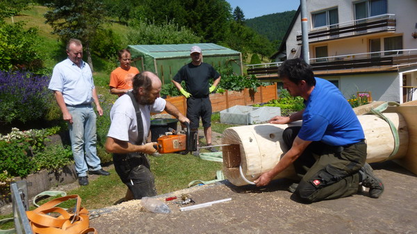 zugesagt.Statt den „Betonklotz“ zu renovieren hatte Hubert Jeurissen die Idee, einen Brunnen aus Holz anzuschaffen. Schließlich wohne man ja auch im Schwarzwald, wo sehr viel Holz verarbeitet werde. Nach