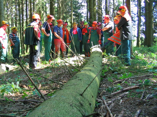 Zum Schluss gab es ein groĂes Lob von den Ausbildern Bauer und Rapp vom Forstamt Oberndorf / Glatttal. Alle Teilnehmer hatten die erlernten Techniken sehr gut umgesetzt und so wurden bis Samstag Nachmittag alle zugeteilten Bäume unfallfrei und fachmännisch gefällt.