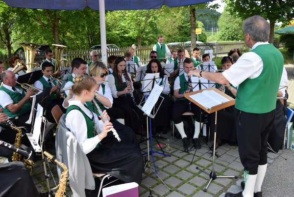 der Feuerwehr reinschnuppern. Danach wurde der Festbetrieb fortgesetzt. Zum Frühschoppen und über die Mittagszeit wurden die Gäste vom Musikverein Hopfau unterhalten.
