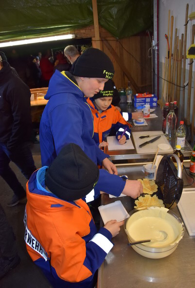 mit ihren selbstgemachten Waffeln das Speiseangebot ab. Die Einkochautomaten dampften und die Helfer hatten alle Hände voll zu tun. Groß war die Nachfrage nach einem heißen Punsch oder Glühwein