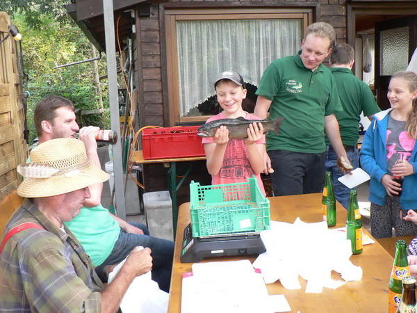 Der Vereinschef freute sich ganz besonders, dass so viele der Einladung gefolgt waren. Danach gab er von Platz 17 angefangen die Platzierungen bekannt. Die größte Regenbogenforelle mit 1348 Gramm