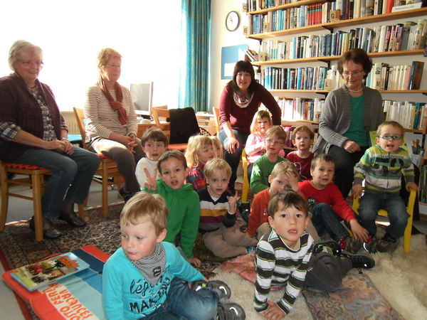 Der Abschluss dieses Projektes fand im Hopfauer Lesestüble statt, wo die Kinder von Gertrud Höhn und ihrem Team freundlich empfangen wurden. In einer großen Leserunde stellten diese den Kleinen die Abenteuer von „Jim Knopf“ vor. Nach einem Rundgang durch das Lesestüble mit der großen Auswahl an Büchern, leihte sich jedes Kind noch etwas Interessantes aus, um daheim zu schmökern.