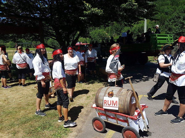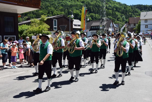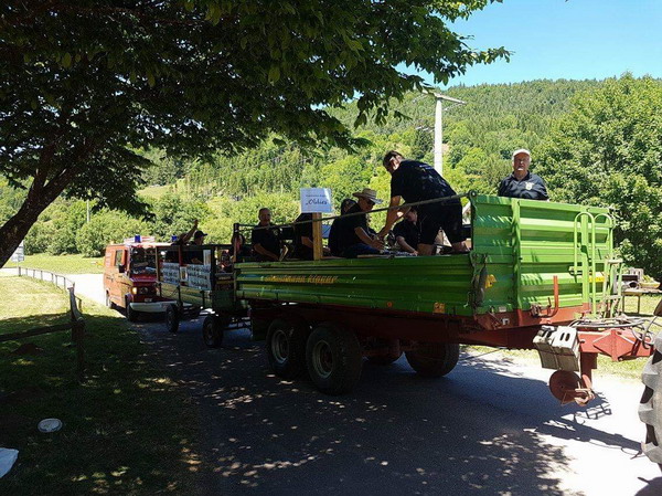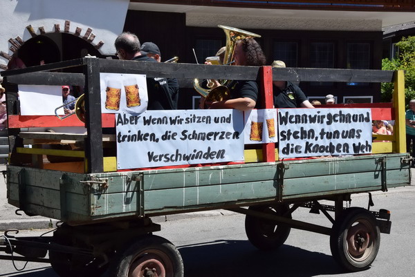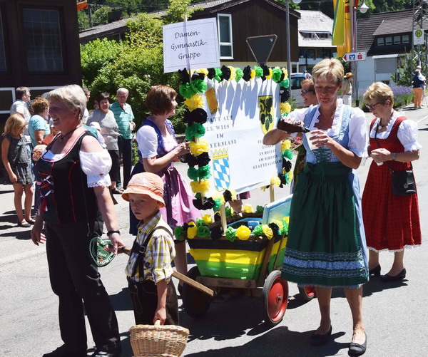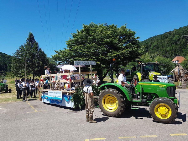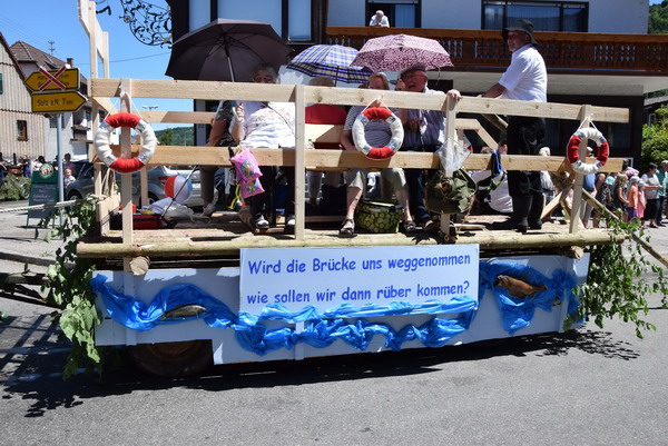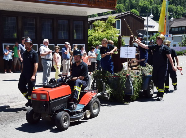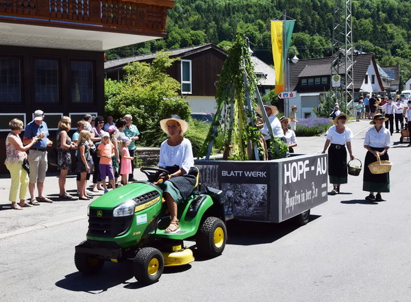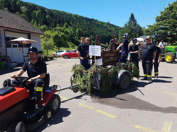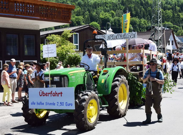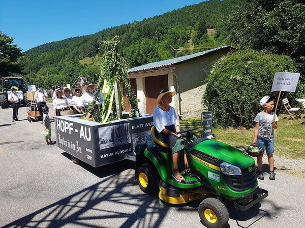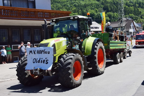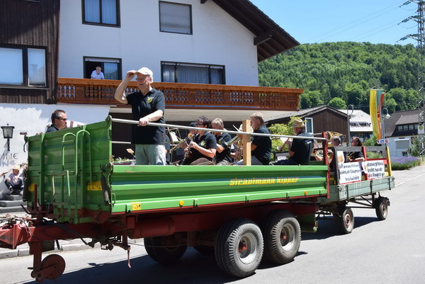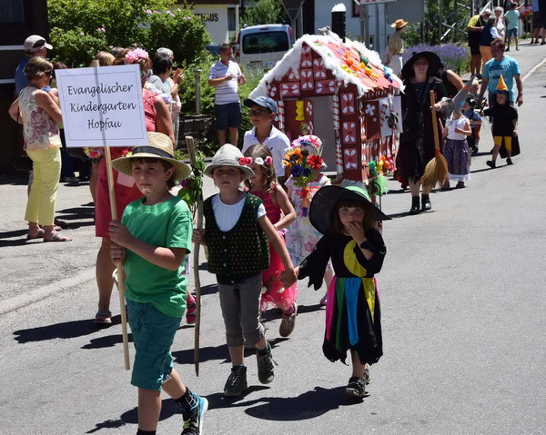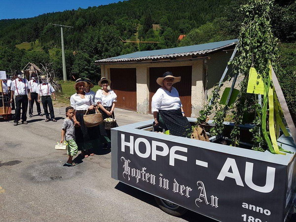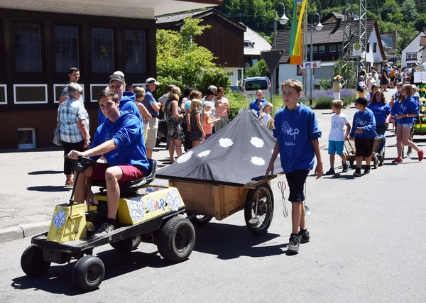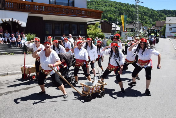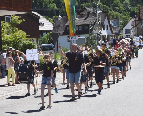 Sulz-Hopfau (dli). Mit Kinderfest und einem Umzug durch den Ort setzte der Musikverein den letzten Glanzpunkt an seinem 50-jährigen Jubiläum. Die Vereine und Gruppen aus dem Ort machten nochmals alles mobil. Von Floristikgeschäft Blatt Werk „In der Au“ machte sich bei herrlichem Sommerwetter ein farbenprächtiger Umzug mit insgesamt 14 Gruppen auf den Weg durch den Ort bis zum Festplatz am Sportgelände. Eine ansehnliche Zuschauerzahl säumte die Straßen bis zum Festgelände. Der Umzug wurde von der Jugendkapelle Marschalkenzimmern angeführt. Ins Märchenland entführte der evangelische Kindergarten die Zuschauer mit seinem Knusperhäuschen, Zauberer und Feen. Als freche Früchtchen und junges Gemüse präsentierte sich die Grundschule aus Dürrenmettstetten. Mit von der Partie waren auch die Pfadfinder. Die Gymnastikgruppe von Irene Reinisch feierte lieber in Hopfau am schönen Glatttalstrand als auf der Wies’n im Bayernland und schenkte kühle Getränke aus. Das Floristikgeschäft Blatt Werk erinnerte an den Hopfen in der Au anno 1891 sowie an den Namensgeber der Ortschaft und verschenkte kleine Bündel mit dem Brauzusatz. Als Marionetten wirkten die AH-ler vom Sportverein mit. Nicht fehlen durften die Aktiven des Musikvereins. Für eine kleine Abkühlung sorgte die nostalgische Spritze der Feuerwehr aus dem Jahre 1785. Der Ortsteil Neunthausen machte sich bereits Gedanken, wie sie bei der anstehenden Brückensanierung über die Glatt kommen sollten. Sie fragten sich: Wird die Brücke uns weggenommen, wie sollen wir dann rüber kommen? Die einstigen Flößer boten deshalb alle halbe Stunde eine Überfahrt für 2,50 Euro an. Als Seeräuber mit hochprozentigem Rum war die Damen-Gymnastikgruppe „Team 86“ unterwegs. Auf das einst bäuerliche Brachfeld verwiesen die Wanderfreunde mit ihrem Leiterwagen und ihrer Fußgruppe als Bauern. Sie schenkten Most an die Zuschauer aus. Dazu gab es Gebäck und kleine Häppchen. Die „Oldies“ als Gründungsmitglieder zierten den Schluss des Umzuges und ließen sich auf zwei Anhängern chauffieren, denn „wenn wir geh’n und steh’n tun uns die Knochen weh – aber wenn wir sitzen und trinken, die Schmerzen verschwinden“. Statt aber zu trinken musizierten sie die ganze Umzugstrecke lang. Für die Verkehrssicherheit während des Umzuges sorgte die Freiwillige Feuerwehr.Im Festzelt hatten anschließend der Hopfauer Kindergarten, die Grundschule aus Dürrenmettstetten, die Flötengruppe des Musikvereins sowie die Jugendkapelle Marschalkenzimmern/Hopfau ihren Auftritt. Die Hopfauer Grundschule hatte auf eine Teilnahme verzichtet, da bei ihnen nur ein Kind aus Hopfau zur Schule geht. Auf dem Festgelände konnten sich die kleinen Besucher in einer Hüpfburg, beim Bungeetrampolin, Ponyreiten und einer Spielstraße von den Pfadfindern vergnügen. Am Abend wurde zum Handwerker-Vesper eingeladen. Zum Festausklang spielte die einheimische Blaskapelle „Wellblech“ auf und sorgte nochmals für eine ausgezeichnete Stimmung.