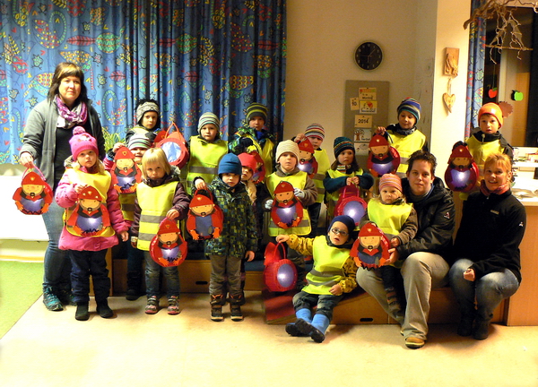 durch den Ortskern. Im Kindergarten wurden die Sprösslinge mit den bereits vor einigen Jahren von der Esso-Station gespendeten Warnwesten eingekleidet und die Lichter in den Laternen entzündet.