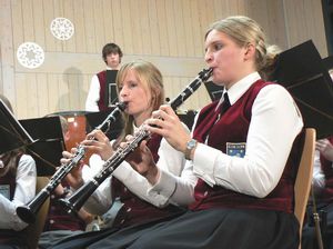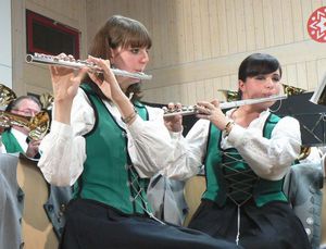 Dirigenten Martin Hirschmann gleich zu Werke. Zum besseren Einfühlungsvermögen erläuterten Monika Haug und Kathrin Mönch bei den einheimischen Musikern die Musikstücke. Ins schöne Isartal führte der Marsch „Swinging Tölz“ im Big-Band-Sound.