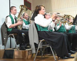 Zuhörer. Den glanzvollen Schlusspunkt ihres Vortrages setzten die Musiker mit dem „Bayrischen Defiliermarsch“. Als vehement geforderten Zugaben gab’s noch das „Wunderschöne Schwabenland“ und mit „Überall ist Weihnacht“ eine