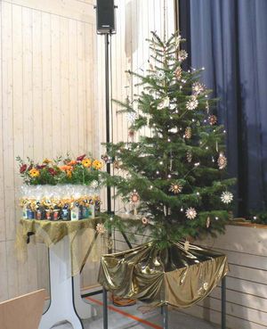 Musiker hatte Schrägle ein kleines Geschenk unter dem Weihnachtsbaum parat. Sein Dankeschön galt allen, die zum Gelingen des Gemeinschaftskonzerts mitgeholfen haben sowie die Wanderfreunden Queenspark-Brachfeld. Sie hatten die komplette