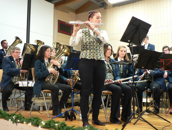 wuchtige Eröffnungsfanfare erforderte gleich höchste Konzentration. Mit dem sinfonischen Werk „Orient Express“ gab es anschließend eine Homage an den wohl legendärsten und mystischsten Zug. Bei den „Sketches forFlutes“ glänzte Fabienne Warmbrunn als Solistin auf der Querflöte und erzählte dabei auf musikalische Weise eine