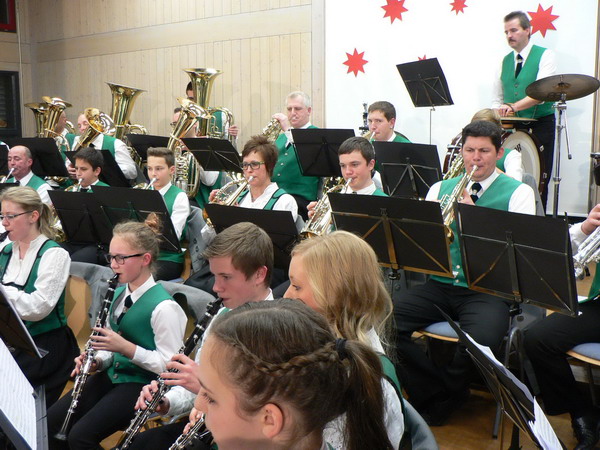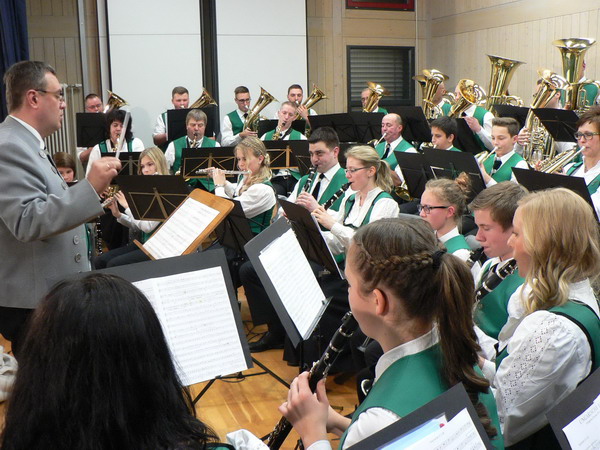 Blasmusikfreunde der Einladung zum Jahreskonzert gefolgt waren. Er bezeichnete das Konzert als die größte musikalische Herausforderung für die Musiker im Jahr. In wochenlanger Probenarbeit wurden Stücke
