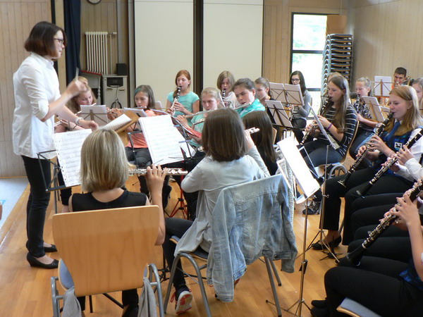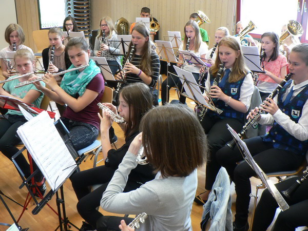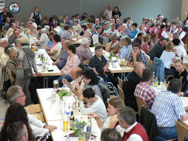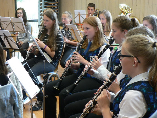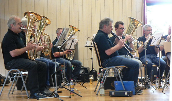 Bis in die frühen Morgenstunden hinein hatte der Musikverein auf sommerliches Wetter gehofft. Da sich der Himmel jedoch immer mehr verdunkelte, entschied sich die Vorsitzende Silke Weigold für „Plan B“. Das bedeutete, die Veranstaltung nicht im Freien, sondern in der Halle durchzuführen. Mit ihrer Entscheidung sollte sie schließlich (leider) Recht behalten. Zu Beginn des Frühschoppens und über die Mittagsstunden prasselte der Regen nieder. Die Gäste ließen sich jedoch von dem Regen nicht vom Festbesuch abhalten. Über die Mittagszeit bis in die frühen Nachmittagsstunden war die Halle proppenvoll. Zum Frühschoppen spielte der Musikverein aus Flözlingen auf und unterhielt die Gäste mit einem bunten Melodienreigen. Die Helfer hatten alle Hände voll zu tun, um dem Besucheransturm Herr zu werden. Angeboten wurden ein reichhaltiger Mittagstisch sowie ein großes Kuchenbüfett. Am Nachmittag hatte die Jugendkapelle aus Marschalkenzimmern/Hopfau mit ihrer Dirigentin Sarah Schanz ihren großen Auftritt. Ihre insgesamt 38 Schützlinge (davon knapp die Hälfte aus Hopfau) gaben einige Kostproben ihres Könnens ab und erhielten dafür viel Beifall. Selbstverständlich wurde auch die gewünschte Zugabe gespielt. Sarah Schanz zeigte sich mit den Nachwuchsmusikern sehr zufrieden. Alle seien sehr motiviert und kämen gerne zu der wöchentlichen Probe. Weil es so viele Musiker seien mache es auch mehr Spaß und man könne auch mehr machen, so die Dirigentin voll des Lobes. Ein Vorteil sei auch, dass in der Jugendkapelle alle Register vertreten sind. Nach dem Auftritt der Jugendkapelle leerte sich die Halle etwas. Als nächste Blaskapelle konnte Silke Weigold den Musikverein aus Bildechingen/Horb begrüßen. Zwischenzeitlich zeigte sich auch die Sonne für einige Zeit. Die kleinen Besucher konnten sich in der aufgebauten Hüpfburg austoben. Reger Betrieb herrschte auch am Weizenbierstand. Den musikalischen Schlusspunkt setzten am Abend zum Festausklang die „Oldies“ des Hopfauer Musikvereins mit ihrem Dirigenten Herbert Zeller. Trotz des schlechten Wetters zog die Vorsitzende Silke Weigold zum Schluss der durchweg gelungenen Veranstaltung ein sehr positives Fazit und bedankte sich bei den zahlreichen Helfern für ihre Unterstützung.