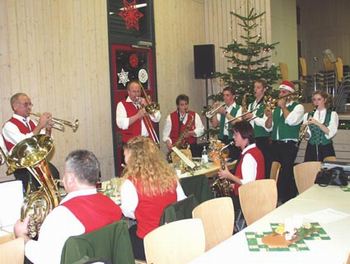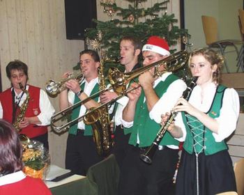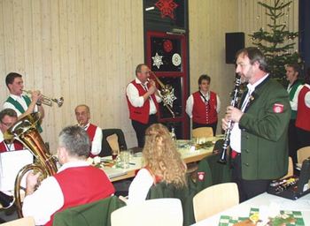 den beiden Ansagerinnen und Dirigenten. Für jeden seiner Aktiven lag ein kleines Geschenk unter dem Weihnachtsbaum. Ein Dankeschön richtete Schrägle auch an die Spender der Tombolapreise sowie an