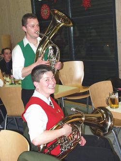 bravourös vorgetragenen Konzertteil. Die vehement geforderte Zugabe wurde mit dem Deutschmeister-Regimentsmarsch gerne erfüllt. Mit einem Blumenstrauß bedankte sich Vorsitzender Daniel Schrägle bei