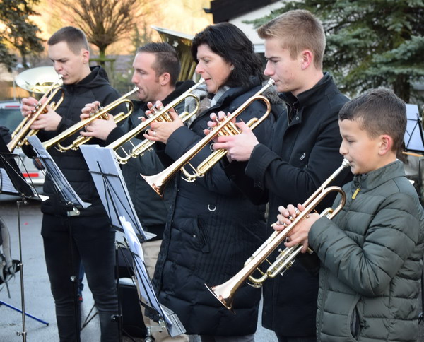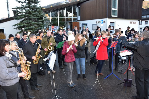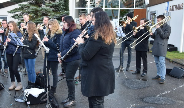 Traditionell stimmte der Musikverein an Heiligabend mit einem kleinen Platzkonzert unter dem Weihnachtsbaum beim Rathausvorplatz auf Weihnachten ein. Bei kühlem, aber trockenem Wetter hatte sich eine große Schar von Zuhörern eingefunden. Unter der Leitung von Dirigent Arne Schauer wurde eine Reihe von weihnachtlichen Weisen gespielt. Das breite Repertoire umfasste bekannte und beliebte Weihnachtslieder aus dem In- und Ausland. Die Vorsitzende Silke Weigold freute sich bei ihrer Begrüßung riesig über den ausgezeichneten Besuch. Für die Unterstützung des Musikvereins das ganze Jahr über bedankte sie sich ganz herzlich. Sie wünschte allen Besuchern schöne und besinnliche Weihnachten sowie einen guten Start ins neue Jahr. Anschließend umrahmte der Musikverein den Gottesdienst in der Katharinen-Kirche.