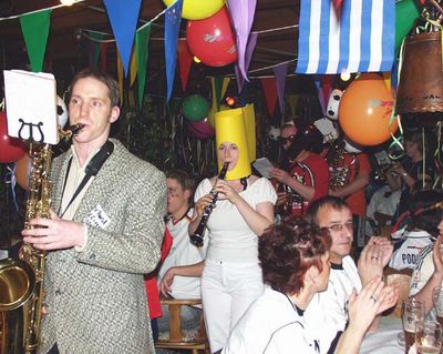 seiner traditionellen Musikerfasnet im weltmeisterlich dekorierten Gasthof „Sonne“. Fast die ganzen Programmpunkte des unterhaltsamen Abends drehten sich um das bevorstehende