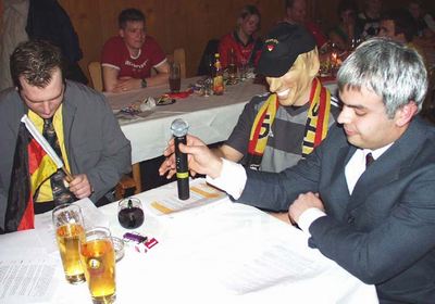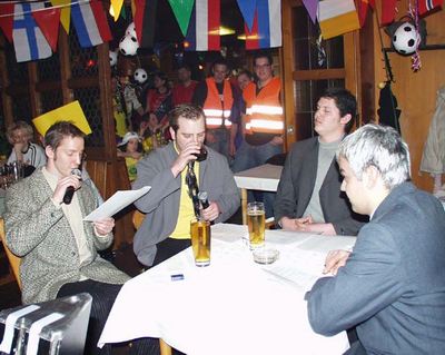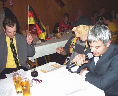und Reiner Vincon verkörpert. Beim WM-Quiz mit anschließendem Torwandschießen (auf ein Leintuch mit Löchern) von Caroline