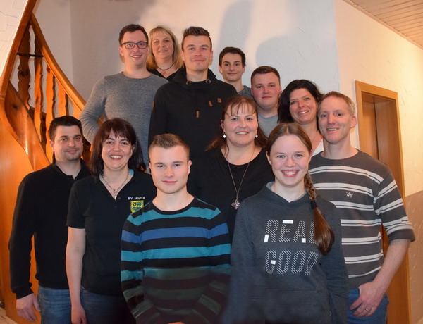 Das Bild zeigt in der hinteren Reihe (auf der Treppe) von links: Tommy Bippus, Corinna Brett, Hermann Reinisch, Elias Schulze, Marc Kitzlinger und Sonja Effinger. Vorne (von links): Thorsten Schubert, Silke Weigold, Marius Bauer, Anke Obergruber, Leonie Schweikert und Daniel Schrägle.