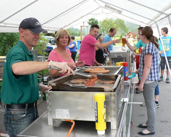 Glück mit dem Wetter hatte der Musikverein bei seinem Platzkonzert am vergangenen Freitagabend. Nachmittags zogen noch dunkle Regenwolken auf und aus der Ferne hörte man es donnern. Es regnete jedoch keinen Tropfen. Zum Festbeginn zeigte sich sogar ab und zu kurz die Sonne. Die aufgestellten Festgarnituren auf dem Rathausplatz füllten sich sehr schnell. Jürgen Trick als stellvertretender Vorsitzender konnte eine große Gästeschar begrüßen und wünschte einige unterhaltsame Stunden. Sein Dank galt all den freiwilligen Helfern hinter und vor der Theke. Bis zum Einbruch der Dunkelheit unterhielten die Musiker unter der Leitung von Ferenc Guti die Gäste mit ihrem breiten Repertoire. Die Zuhörer kamen dabei voll auf ihre Kosten und geizten nicht mit Beifall. Ohne Zugaben durften sich die Musiker nicht verabschieden. Für das leibliche Wohl war mit Spezialitäten vom Grill bestens gesorgt. Bis in die späte Nacht hinein herrschte reger Betrieb.