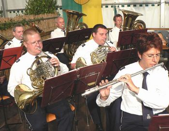 inspirieren. Die ausgezeichnete Stimmung hielt bis weit nach Mitternacht an. Am Samstagnachmittag empfing der Hopfauer Musikverein ihre Patenkapelle aus Fußach (Vorarlberg/Österreich)