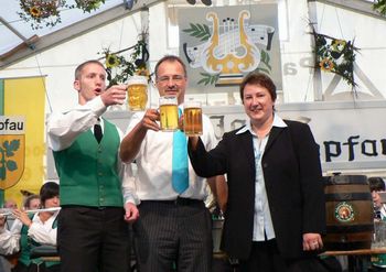 Kindern und Jugendlichen auswirke und das Gemeinschaftsgefühl stärke. Als Geschenk überreichte Hieber dem Vorsitzenden Daniel Schrägle ein Fass Bier und einen Kasten alkoholfreie Getränke zur