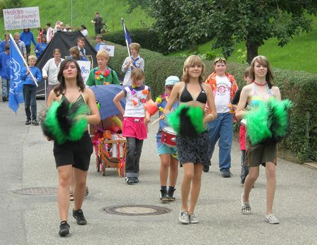 gestrigen Kinderfest hold. Beim farbenprächtigen Umzug durch den Ort machten die Vereine und Gruppen nochmals alles mobil. Den Vorführungen der Kinder und einigen Spielen folgte das Handwerkervesper und am Abend der Ausklang mit den