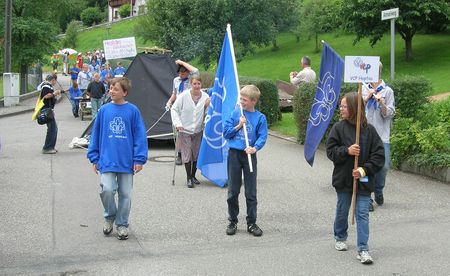 Pfadfinder und gaben einen Einblick in ihr tägliches Leben. Dem Motto „Make love not war” hatte sich die Gymnastikgruppe “Team 86” verschrieben und erinnerte an die Blumenkinder der 70er-Jahre. Den