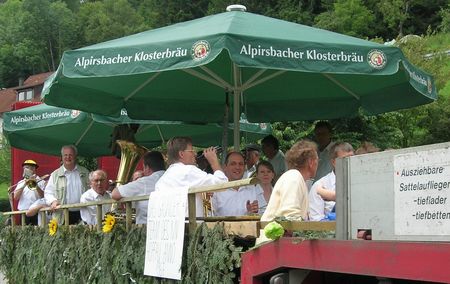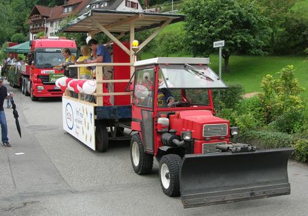 den Wagen geschrieben und verteilte fleißig Bonuspunkte. Die einstigen Gründer des Musikvereins mit ihrem ehemaligen Vorsitzenden Oskar Keck ließen sich auf einem Auflieger chauffieren