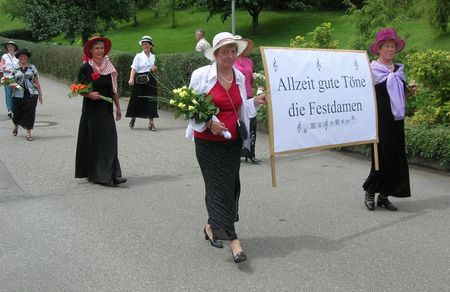 sie dabei. Die Damen-Gymnastikgruppe von Irene Reinisch präsentierten sich als Festdamen. Eric Seeger und seine „Drei von der Tankstelle“ hatte sich den Slogan „ihre Treue wird belohnt“ auf