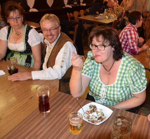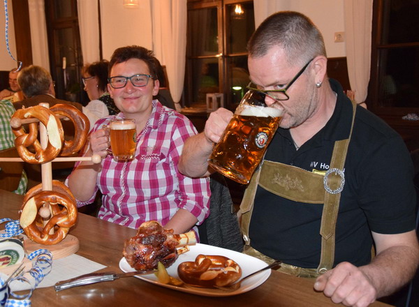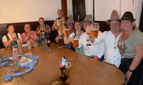 zahlreichen Gästen gab es viele fesche Madl im Dirndl und gestandene Mannsbilder in Lederhosen zu sehen. Für Stimmung sorgte Alleinunterhalter Wolfgang Bräuer aus Tennenbronn. Er mischte sich mit