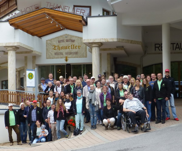 Das Gruppenbild entstand nach der Brauereibesichtigung im Hotel–Gasthof Thaneller in Rinnen bei Berwang.