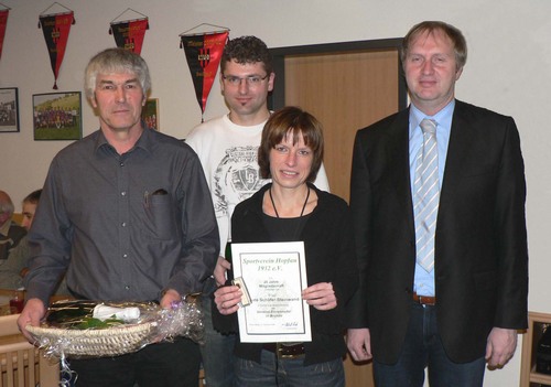 Von 1995 bis 2001 war er im Ausschuss tätig und übernahm danach das Amt des Spartenleiters. Zu den Urkunden und Nadeln gab es obendrein noch eine Flasche Jubiläumssekt. Zum Ehrenmitglied wurde Hans Mönch ernannt. Mönch schnürte von