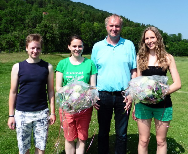sich Helmut Link als Vorsitzender und Trainer bei den beiden Spielerinnen. Nach dem Abstieg aus der Landesliga gibt es bei der Damen-Mannschaft einen Umbruch. Insgesamt haben sechs Spielerinnen