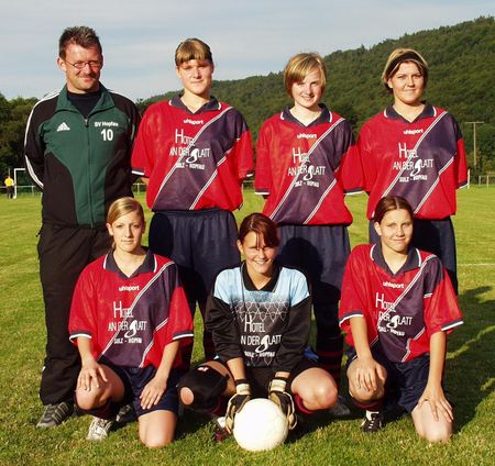 Das Bild zeigt von links: Trainer Achim Hank, Anja Rudiger, Doreen Dienel und Tanja Tews. Vorne (von links): Joana Hofstetter, Stefanie Fittig und Tamara Braun. Auf dem Bild fehlt Caroline Hötzel.