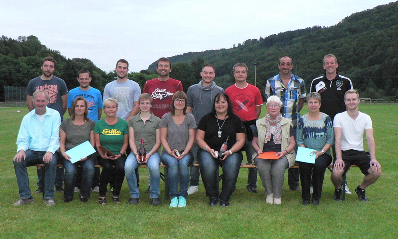 Das Bild zeigt (von links gesehen) in der hinteren Reihe Yannic Bezner, Mario Grötzinger, Christian Springmann, Thomas Mutschler, Peter Schwandt, Alexander Kneissler, Jochen Schoch und Olaf Wittig. In der vorderen Reihe den Vorsitzenden Helmut Link und seine Stellvertreterin Rebecca Horr, Loni Grötzinger, Doreen Dienel, Katja Blöchle, Anke Obergruber, Gerda Steinwand, Cornelia Frey und Rene Blöchle.