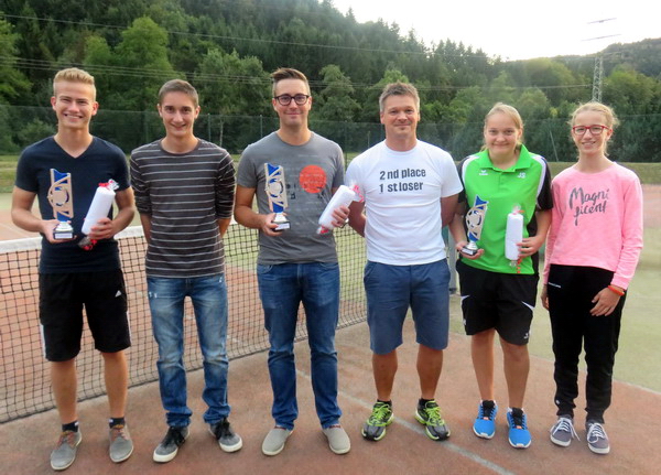 Bereits Ende Juli wurde zu den Vereinsmeisterschaften aufgerufen. Insgesamt hatten sich elf Teilnehmer in die Starterliste eingetragen und sich dem Wettkampf gestellt. Die Austragung der einzelnen Spiele wurde unter den Teilnehmern abgesprochen. Fest stand lediglich der Tag, an dem die Endspiele ausgetragen werden mussten. Nach den Gruppenspielen spielte jeweils der Erstplatzierte gegen den Zweitplatzierten den Titel aus. Bei den Juniorinnen siegte Julia Schreiber mit 6:0 und 7:5 gegen Anna-Lena Weigold. Sie verteidigte damit ihren Titel erfolgreich. Dritte wurde Leonie Schweikert. Bei den Junioren gingen sechs Teilnehmer an den Start. Im Endspiel standen sich letztlich Lukas Weigold und Manuel Schreiber gegenüber. Hier konnte sich Lukas Weigold für seine Endspielniederlage aus 2014 revanchieren und siegte mit 6:3 und 6:3. Bei den Herren waren es mit Paul Reinisch und Sascha Horr lediglich zwei Teilnehmer. Um aber einige Spiele durchzuführen, spielten auch einige Junioren mit. Mit dem älteren Jahrgang von den Junioren wurde auch die Herren-Mannschaft in der Verbandsrunde komplettiert. In einem hochklassigen und Dramatik nicht zu überbietenden Endspiel behielt schließlich Paul Reinisch mit 6:4, 3:6 und 12:10 die Oberhand. Im entscheidenden dritten Satz konnten zunächst beide Spieler einen Matchball nicht nutzen. Sascha Horr leistete sich bei einer 10:9 Führung beim Aufschlag einen Doppelfehler und verlor schließlich die Partie unglücklich. Bei der Siegerehrung überreichte Vorsitzender Sascha Horr an die jeweiligen Sieger Pokale und Sachpreise. Mit einem geselligen Grillfest wurde anschließend der Rundenabschluss gefeiert und die Tennissaison beschlossen.