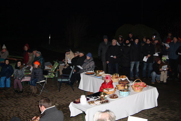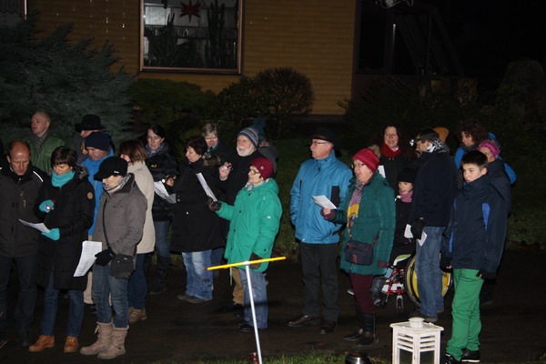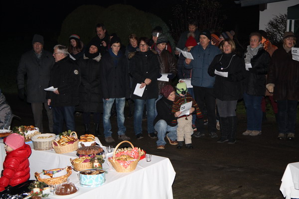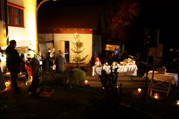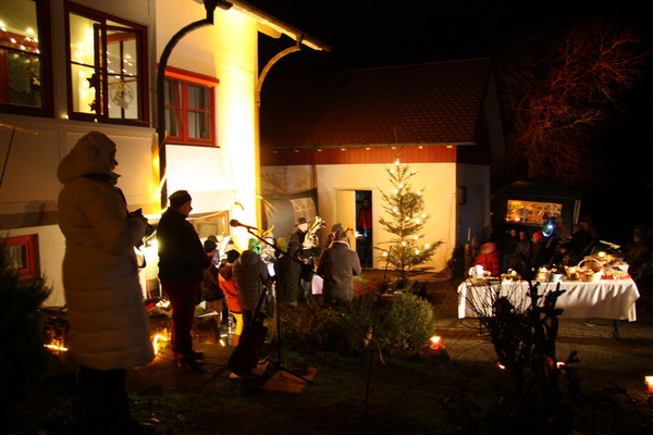 Sulz-Hopfau (hus). Rund hundert Besucher ließen sich am Sonntagabendauf dem Brachfeld bei Hans-Thomas und Elfriede Buchner auf den Advent einstimmen. Der Treffpunkt, nun schon zum fünften Mal, war vor dem Haus der Buchners, das mit Kerzen beleuchtet eine besondere Atmosphäre bot. Weihnachtliche Weisen erklangen vom Posaunenchor Hopfau/Dürrenmettstetten, zu denen die Kinder und Erwachsenenmitsangen. Pfarrer Hans-Thomas Buchner erzählte in seiner Andacht von dem kleinen Hirten, der dem Jesuskind als Geschenk „nur seine einfache Lampe“ überbrachte. Doch gerade dieses Licht erhellte die Krippe und bis heute erfreuen sichdie Menschen in der Adventszeit an dem Licht der Kerzen, das Freude und Geborgenheit schenkt. Danach lud Buchner noch zum Verweilen ein und an Gebäck, heißem Punsch und Tee konnten sich die Gäste stärken. Der Erlös dieser Adventsfeier geht an den Kapellenbau.