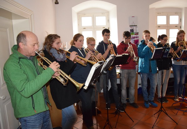 sich über den guten Besuch und wünschte bei der kleinen Feier gute Unterhaltung und gute Gespräche. Ein Willkommensgruß galt auch dem Posaunenchor Hopfau/Dürrenmettstetten. Traditionell luden die Bläser