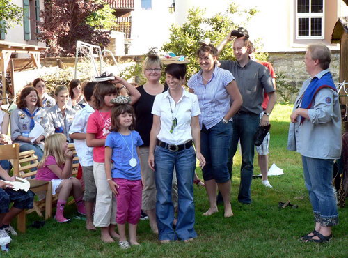 einigen auserwählten Erwachsenen musste die Geschicklichkeit, die Schuhe auf dem Kopf zu tragen, unter Beweis gestellt werden. Dabei hatten die Kinder knapp die Nase vorn. Pfarrer Christoph Knoke bedankte sich bei den