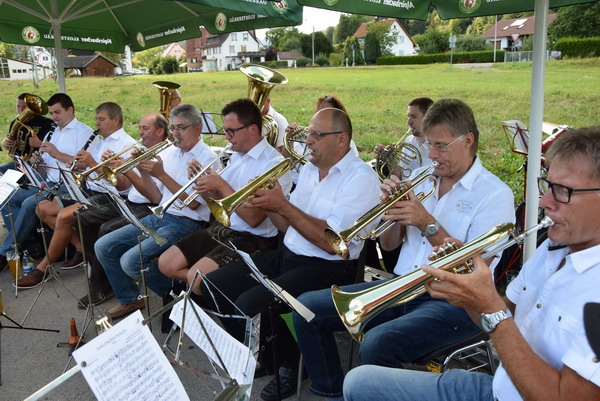 Hobbymusiker vom Hopfauer Musikverein) unter ihrem Ehren-Dirigenten Herbert Zeller auf und sorgten mit ihren schwungvollen Melodien für beste Unterhaltung. Der Festplatz zwischen dem Radweg und dem Ufer