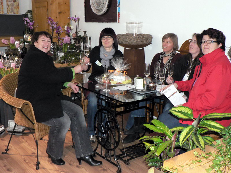 Mit der Eröffnung eines Cafés im Blatt Werk erfüllte sich Inhaberin Katja Blöchle einen langgehegten Wunsch. Bereits vor vier Jahren wollte sie in ihren Räumlichkeiten „In der Au“ ein Café einrichten, doch die Vorschriften im Sanitärbereich hinderten sie daran. Zwischenzeitlich hat sich die Gesetzeslage geändert und der Weg für ihr Café war frei. Ihre Gäste und Kunden können nun während den üblichen Öffnungszeiten bei einer Tasse Kaffee, Cappuccino, Latte Macchiato oder heißer Schokolade sowie Kuchen inmitten der Floristikartikel verweilen, das gemütliche Ambiente genießen und sich für eine Weile „fallen lassen“. Katja Blöchle (Bildmitte) findet es fast schade, einfach nur durchzulaufen und dann wieder zu gehen. Zur Eröffnung gratulierte auch Ortsvorsteherin Daniela Wittig (links) mit einem kleinen Geschenk und wünschte ihr viel Erfolg. Mit einem Glas Sekt wurde auf das Café angestoßen.