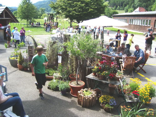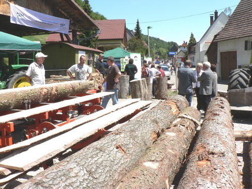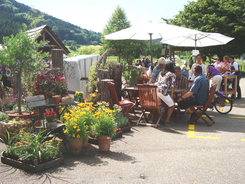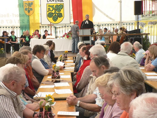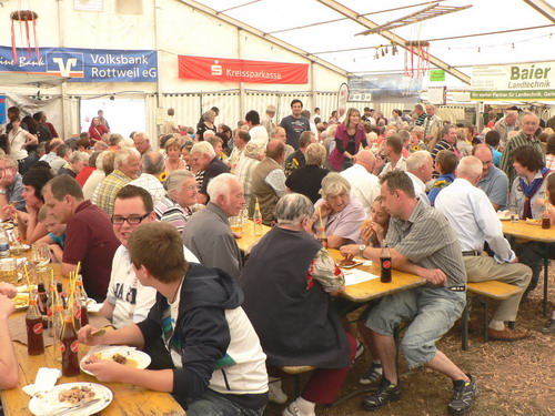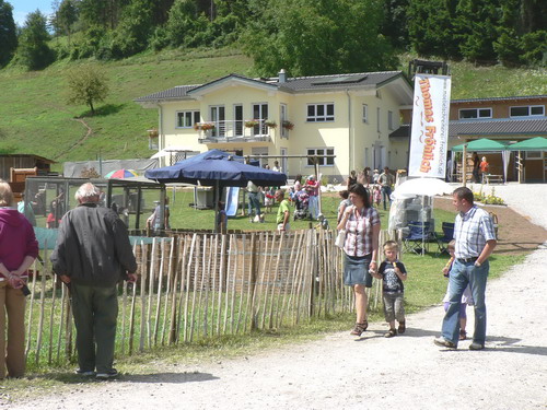 Der Festsonntag begann mit einem Gottesdienst im Zelt, der Pfarrer Christoph Knoke mit zahlreichen Festbesuchern feierte. Bürgermeister Gerd Hieber eröffnete mit Daniela Wittig im Anschluss daran die Gewerbeausstellung „Highlights rund ums das Dorf. Beim Rundgang besuchten sie alle Stationen, an denen sich das örtliche Gewerbe vorstellte. Die teilnehmenden Firmen organisierten eine Dorfrally, bei der es tolle Preise zu gewinnen gab. Beim Apfelgut Duttenhofer begannen Hieber und Wittig mit zahlreichem Gefolge ihren Rundgang. Im Apfelgut konnten allerlei regionale Köstlichkeiten probiert werden. Gartenpflanzen Späth lud zum „Tag der offenen Tür“ ein, Rosenduft und „Futtern wie bei Muttern“ zog viele Besucher magisch an. Weitere Stationen wie „Blattwerk“ (Katja Blöchle), der Stand zum Thema „Forstwirtschaft“ und „Echt Schwarzwald“ von Gustav Rothfuß, sowie die Besichtigung des landwirtschaftlichen Hofes von Bernd Steinwand gehörten zu den viel besuchten Highlights. Als besonderes Schmankerl erwies sich die Quad-Rennstrecke von Eric Seeger. Hier konnten Kinder und Erwachsenen einige Runden mit dem Quad drehen. Diesen Spaß ließ sich Hieber nicht entgehen, dieser musste aber feststellen, dass Daniela Wittig mit der gleichen Maschine um einiges schneller und sicherer unterwegs war. (Sie hat aber auch den Motorradführerschein, Hieber nicht.) Der Spaß blieb trotzdem nicht auf der Strecke, ging es doch noch weiter zur Schreinerei Thomas Fröhlich und zur Werbeberatung Schmid. Im Backhaus wurde frisches Brot gebacken, und das Architekturbüro Glück stellt „Bauen für die Zukunft“ vor. Der Reiterhof von Joachim Lefévre organisierte Ponyreiten und im Außenbereich des Zeltes stellten sich mit Verkaufsständen verschiedene einheimische Gewerbe vor. Schnaps, Nudeln, Wollartikel…, Kulinarisches direkt zum Verzehr oder zum mit Nachhause nehmen, Blutdruckmessen beim DRK oder Basteln für Kinder bei den Pfadfindern, Angebote gab es in Hülle und Fülle. Im Festzelt gab es zünftige Blasmusik und zum Abschluss wurde die Gewinnerin der Dorfrally ermittelt. Marie-Louisa von Au-Waildorf gewann den Kochkurs mit Martina Meuth und Bernd Duttenhofer. Daniela Wittig zeigte sich hoch zufrieden mit dem Verlauf des Festes. Besseres Wetter, mehr Besucher und größeres Engagement der Hopfauer Bürger und Vereine hätte sie sich nicht wünschen können, war sie sich absolut sicher.