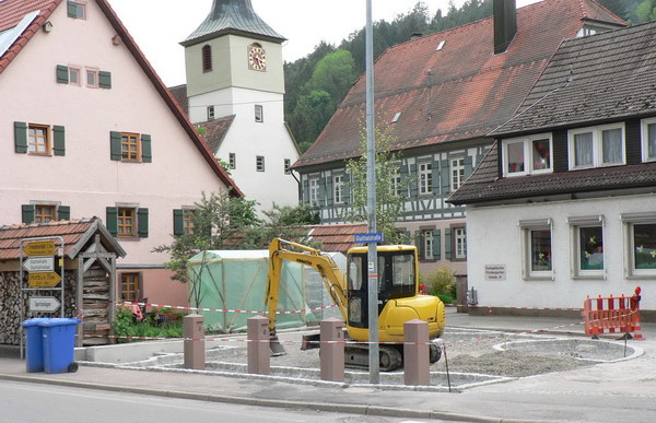 Weit hinter dem ursprünglichen Terminplan ist die Gestaltung des Dorfplatzes in der