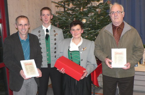 Das Bild zeigt (von links gesehen) Rolf Springmann, den Vorsitzenden Daniel Schrägle, Sonja Schrägle und Franz Trick.