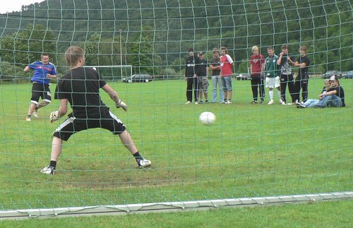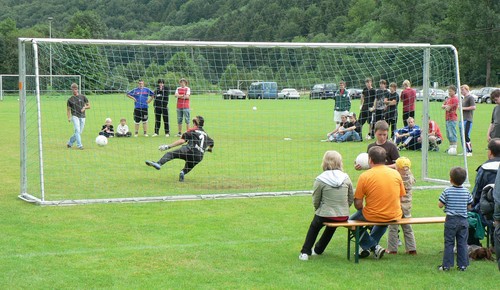 Kuchen einen ausgezeichneten Besuch. Interessiert verfolgten die Besucher das Elfmeterturnier der Vereine und Gruppen. Insgesamt 13 Teams hatten sich in die Teilnehmerliste eingetragen. In zwei Gruppen