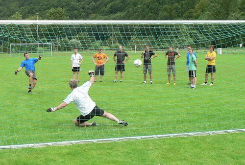 Im Rahmen seines Dorfpokalturniers veranstaltete der Sportverein am Sonntag ein Elfmeterturnier. Zwölf Mannschaften aus dem Ort beteiligten sich an der Gaudi. Im Endspiel besiegten die Elfmetertöter den Tennisclub knapp mit 5:4 Toren.