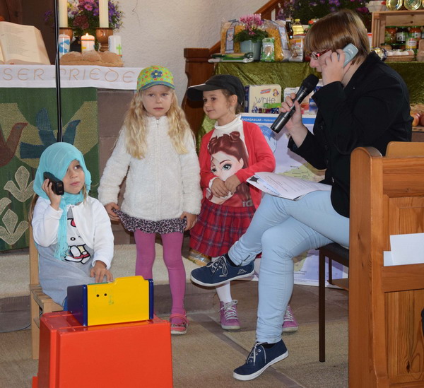 Erntedankfest. Für die feierliche Umrahmung sorgte der Posaunenchor. Mit einem Kleinstkredit unterstützte der Kindergarten eine Lebensmittelhändlerin in Madagaskar.