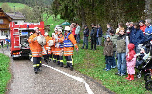 Die Bilder zeigen die Glatter Feuerwehr mit einem Teil der zahlreichen Zuschauer sowie die Feuerwehrkameraden aus Hopfau und Sulz beim
