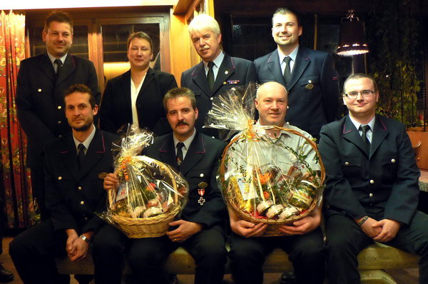 und Jörg Springmann wurden zum Ober-Feuerwehrmann befördert. Mit einem Geschenkkorb von seinen Feuerwehrkameraden, Blumen und einem