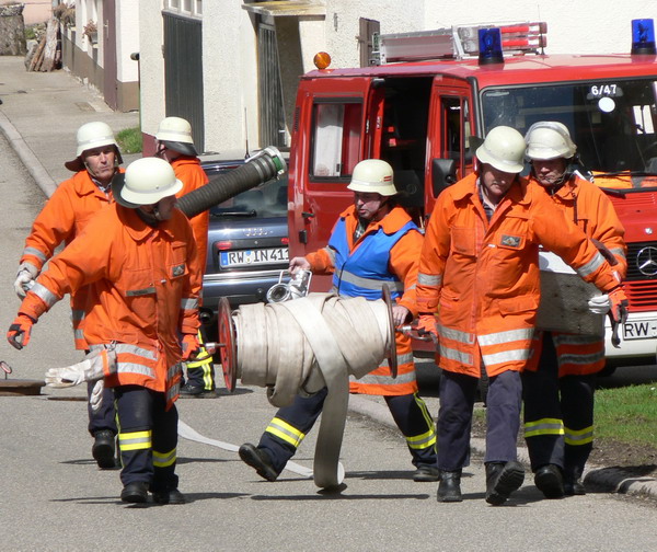 vom Obergeschoss das Haus nicht mehr verlassen. Um 15 Uhr wurde von der Leitstelle in Rottweil der Sirenenalarm ausgelöst. In die Übung mit eingebunden wurden auch die neun Kameraden von der Jugendfeuerwehr.